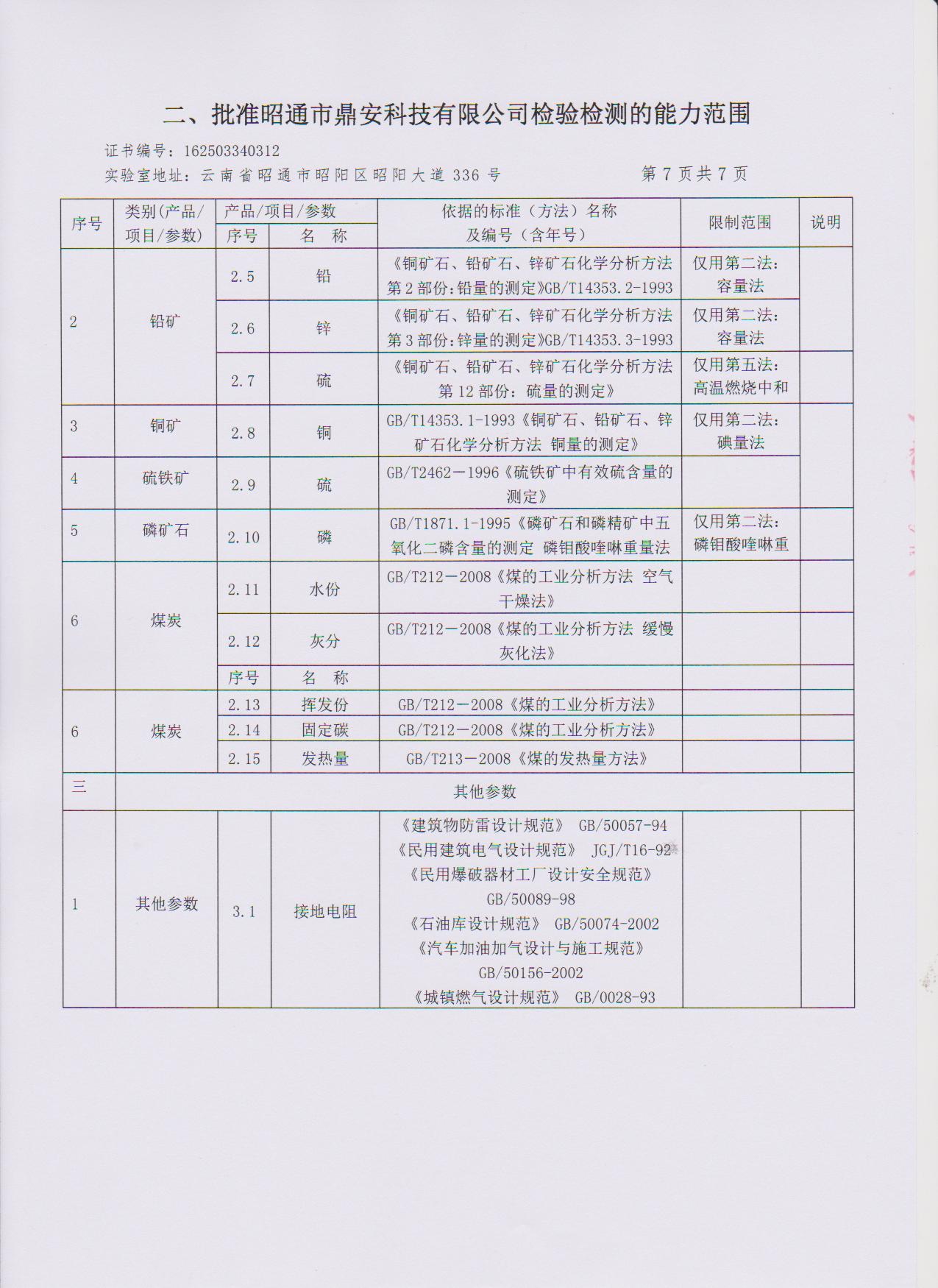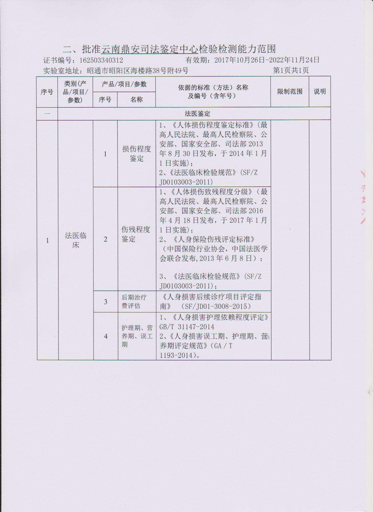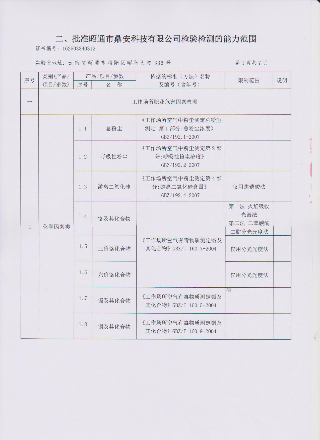 經技術評審審核認定的檢測項目(第一類業務 合計110項)