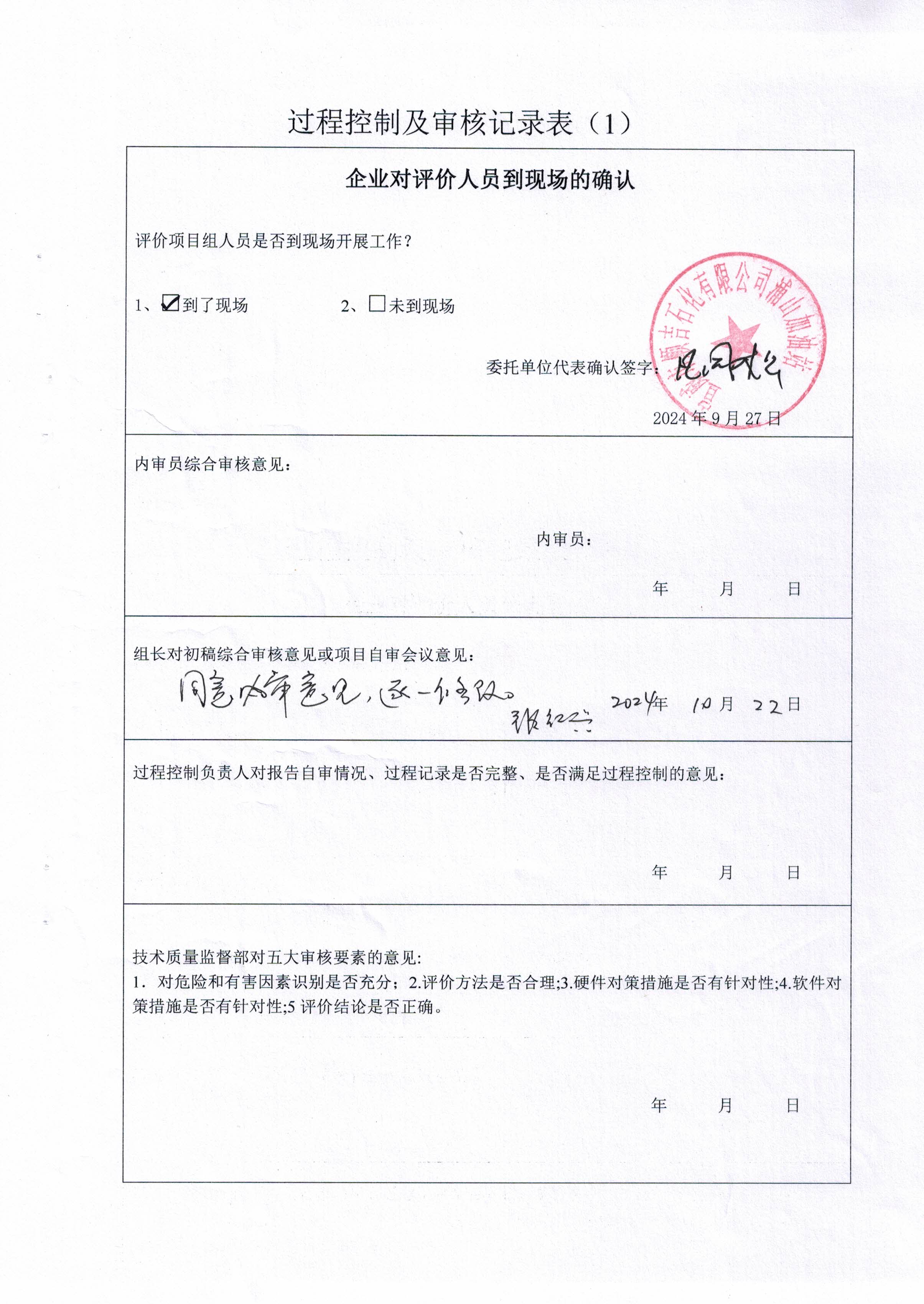過(guò)程控制審核 | 內(nèi)審意見(jiàn)(√ 通過(guò) 口 不通過(guò) ) √ 是 口 否 | |||||||