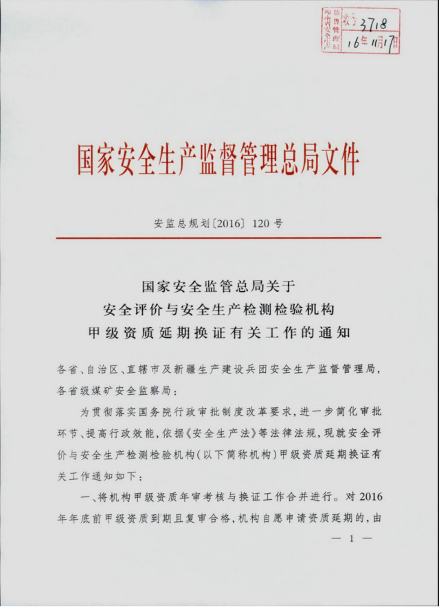《國家安全監管總局關于安全評價與安全生產檢測檢驗機構甲級資質延期換證有關工作的通知》
