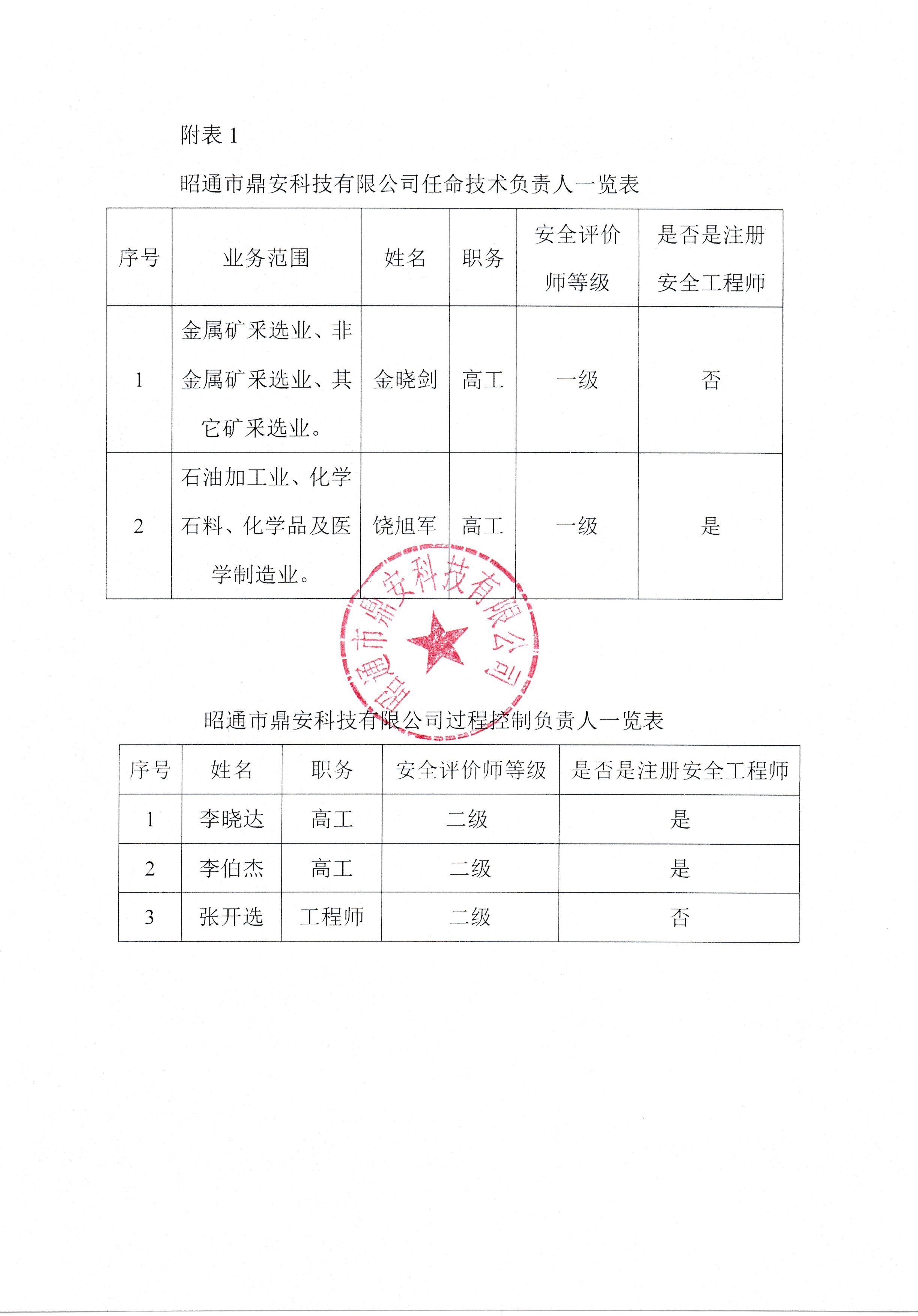 關于任命公司安全評價技術負責人和過程控制負責人的通知