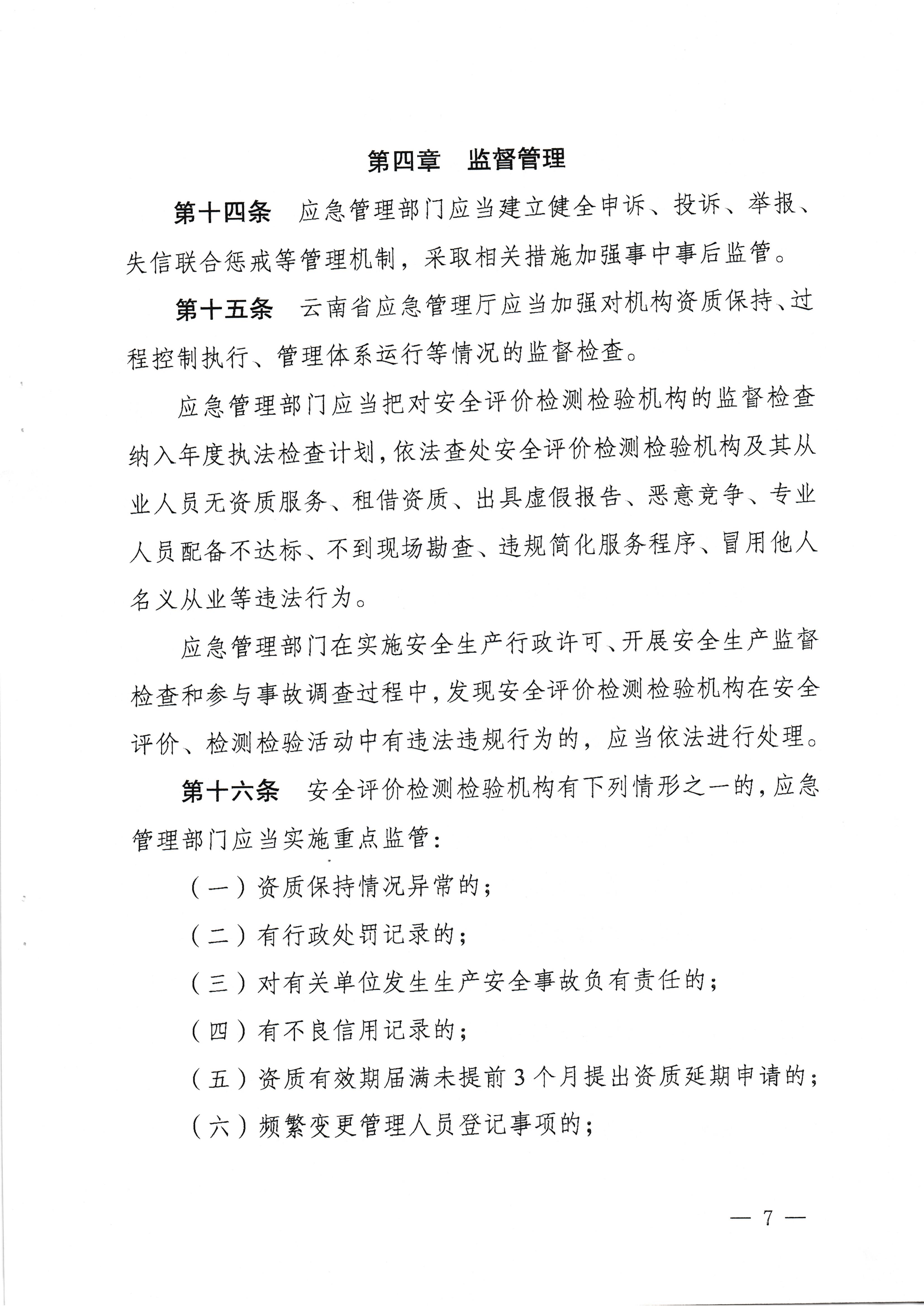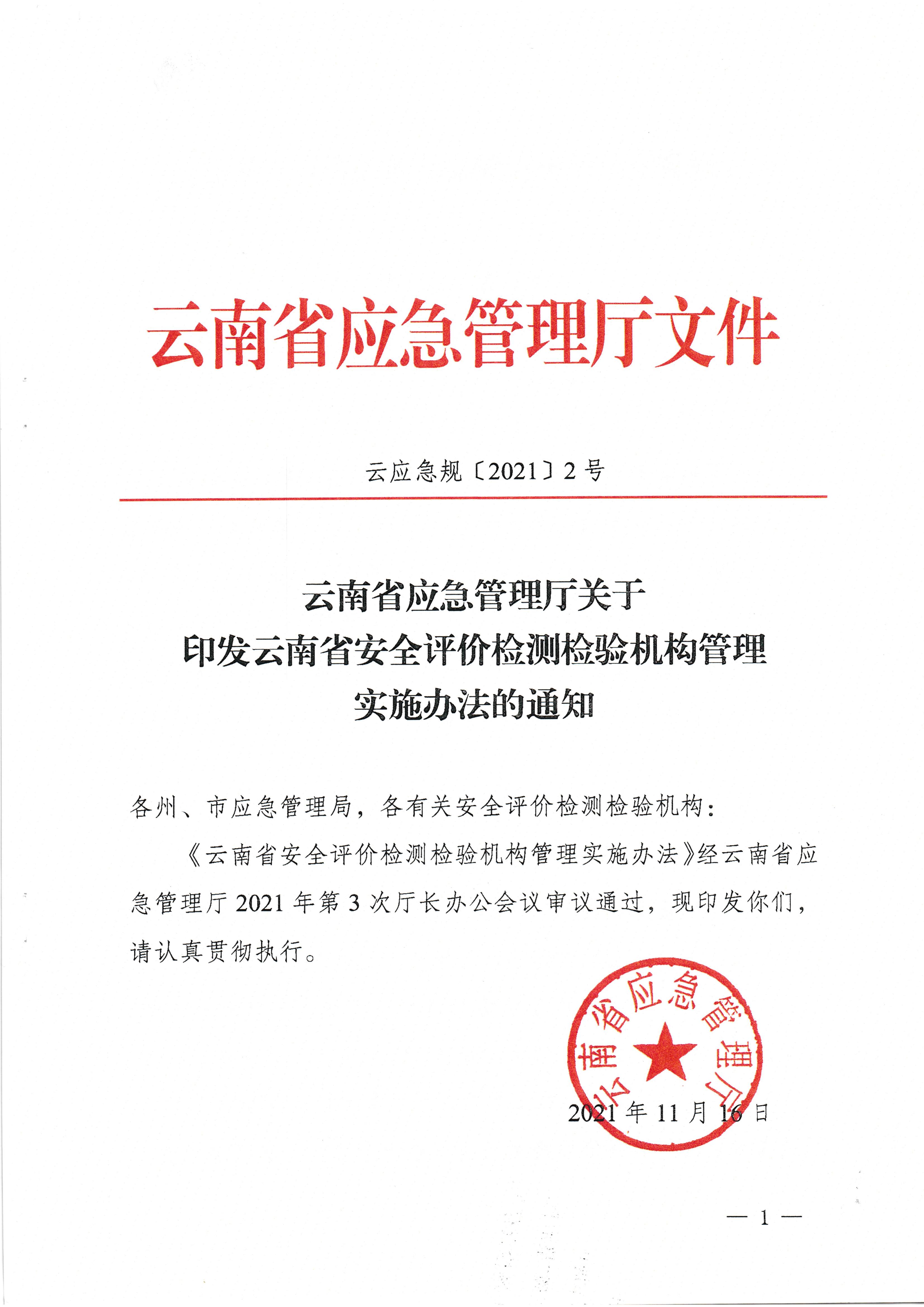 云南省應(yīng)急管理廳關(guān)于印發(fā)云南省安全評(píng)價(jià)檢測(cè)檢驗(yàn)機(jī)構(gòu)管理實(shí)施辦法的通知
