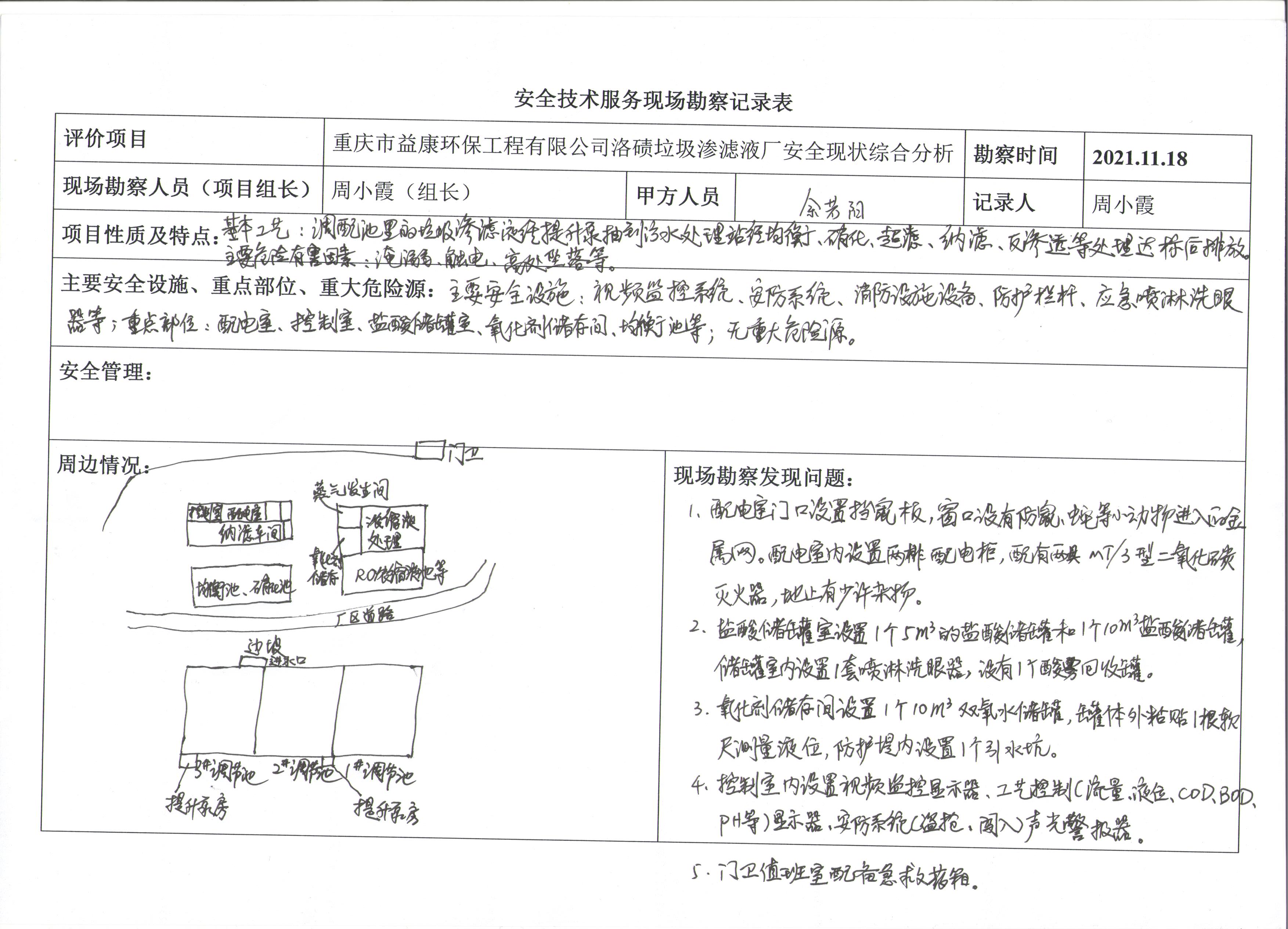 現場勘查情況 | 重慶市益康環保工程有限公司洛磧餐廚污水廠安全狀情況 | |||||||